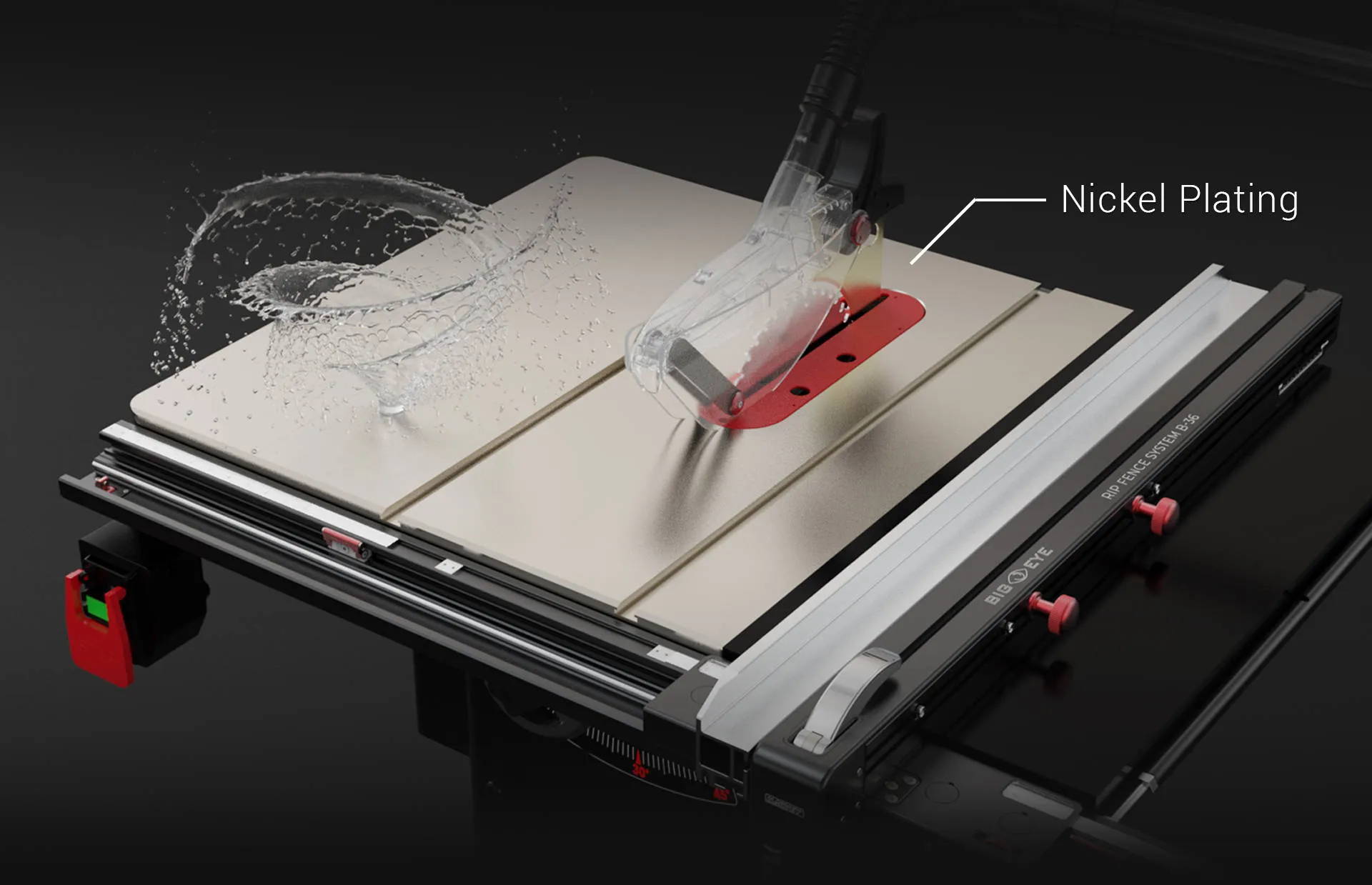 However, Harvey is always striving for perfection. Five years ago, we started exploring the nickel plating technology. After countless tests on the process and formulation, we have successfully implemented optimal nickel plating technology on the tabletop and the Worm Gear Trunnion System within the table saw, ensuring a literally rust-free experience for users by completely eliminating issues of wear and rust.
