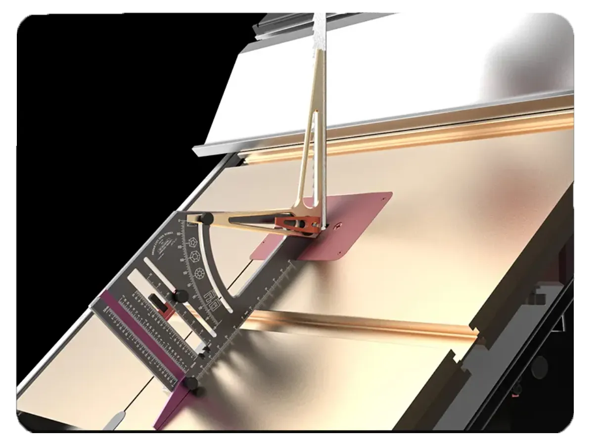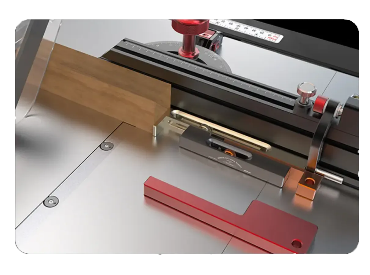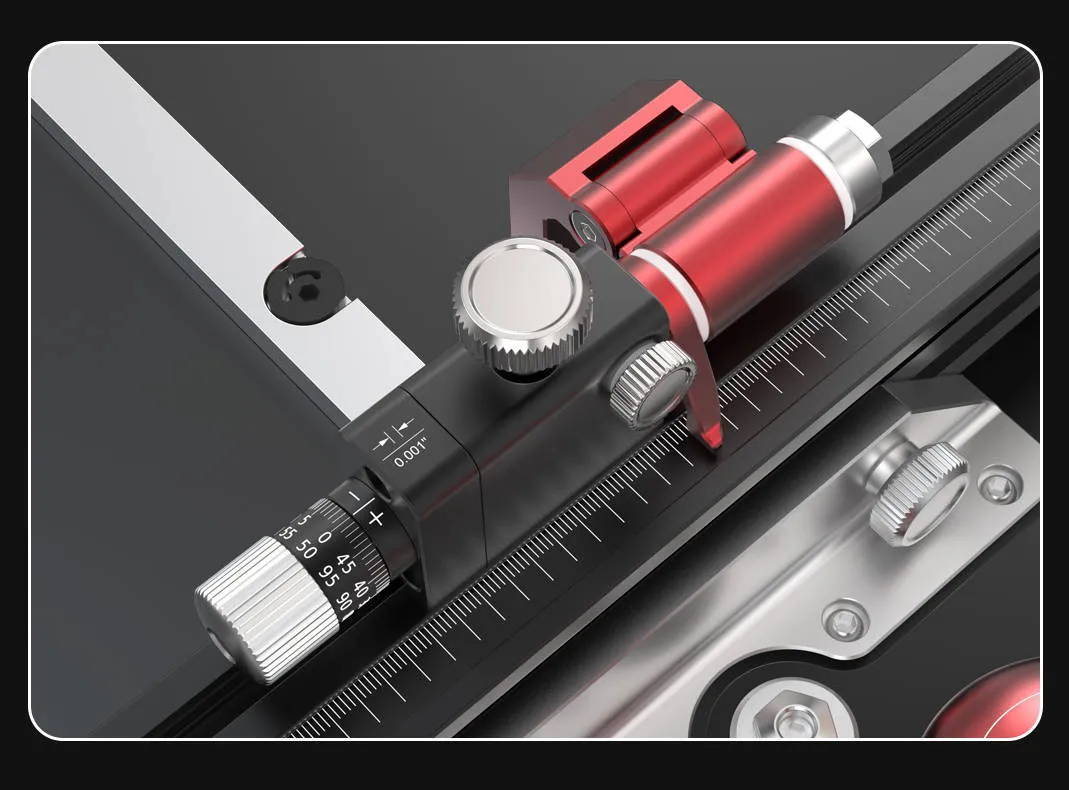 The Big Eye Rip Fence System introduces a very special scale viewer: The K9 Crystal Glass Window, boasting an impressive light transmittance of up to 92% and exceptional hardness, ensuring minimal visual errors (parallax) when reading measurements, offering superior durability and resistance to wear.