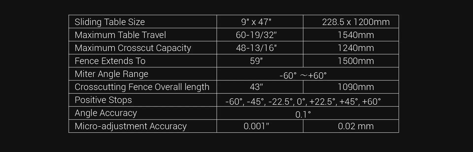 * The included MG-36Pro Miter Gauge is Imperial version by default. If you need Metric version, please contact us to replace while purchasing.