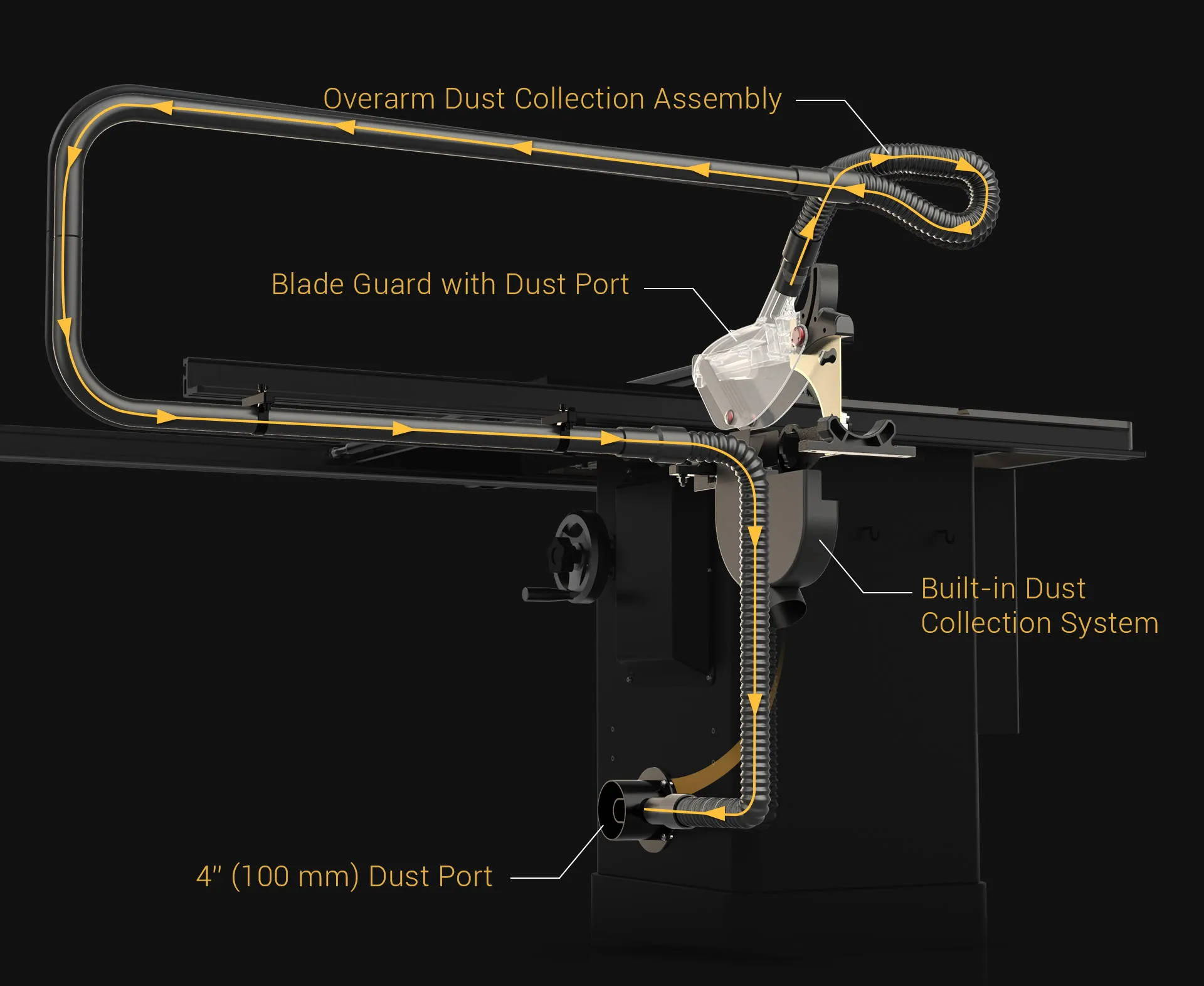 * Internal channel captures dust at the source for cleaner cuts, clearer air, and a tidier workspace.