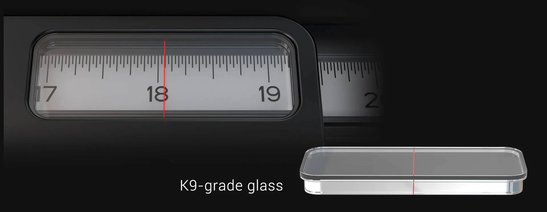 The K9 Crystal Glass Window is a special scale viewer that boasts exceptional hardness and superior light transmittance, ensuring minimal visual errors (parallax) when reading measurements. It offers superior durability and resistance to wear compared to standard plastic scale viewers, providing more accurate fence positioning readings.