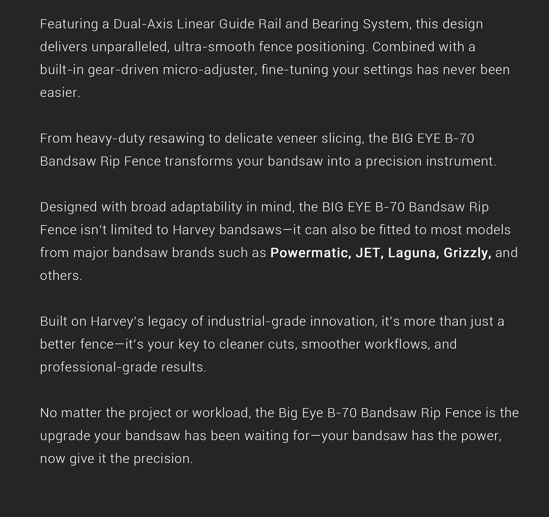 ClickCease BIG EYE B-70 Bandsaw Rip Fence – Harvey Woodworking
