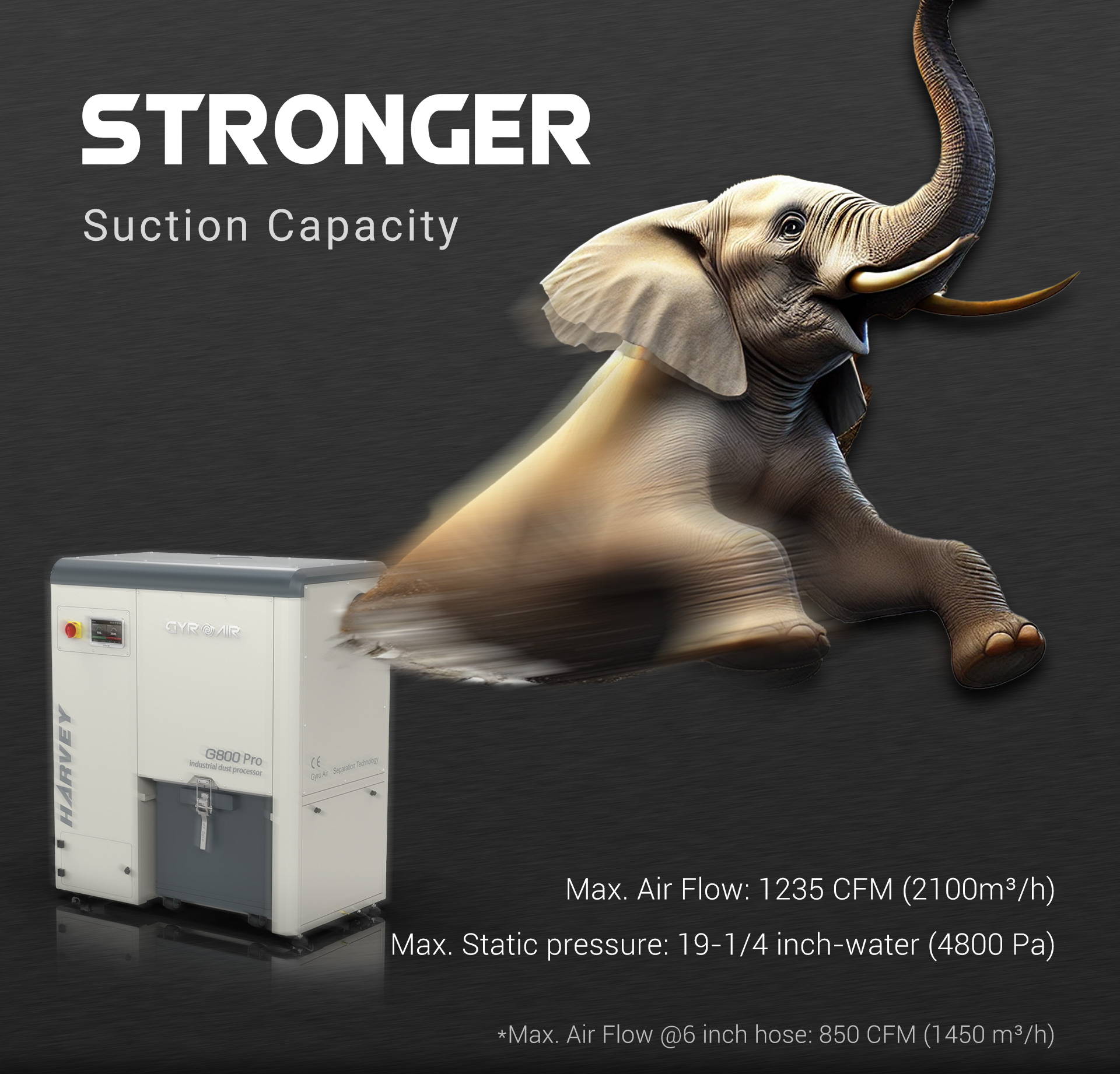 The G-800 dust processor has met and perhaps exceeded our expectations. Our main goal was to reduce the noise level in the work shop. We've been running the processor at 3500 rpm's and are able to carry on a normal conversation while standing next to the machine. I've had my hearing protection while working and had to check the machine to make sure that it was on since it is so quiet. With our previous collector, there was never any doubt that the machine was running, even when I had hearing protection on. The G-800 seems to be handling the dust collection when using multiple tools at the same time better than the previous collector. We've not changed the ductwork yet so we may get better collection once that is done. We also have the ability to increase the rpms so that may help if we feel the the G-800 isn't keeping pace with the machines being used.