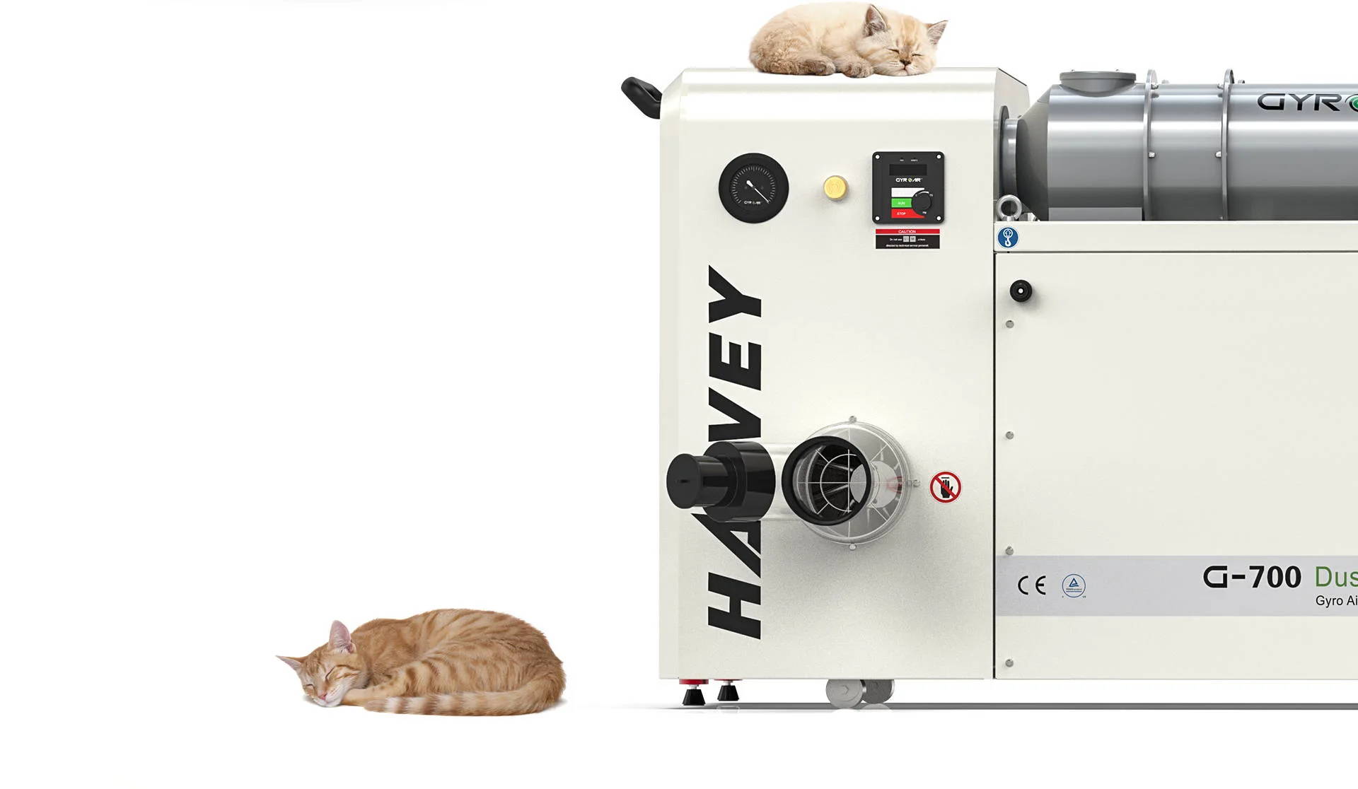 The Gyro Air® Dust Processor technology has revolutionized dust collecting. It was designed with Harvey’s invention of Axial Centrifugation Technology (or called Gyro Air® Technology) which is completely different than any existing dust collector on the market. The Gyro Air® Technology spins the flowing dust stream at high speeds (over 4000 rpm), which generates a significant centrifugal force on dust particles (over 100g) causing them to be pushed away from the air flow center and depositing them into dust tanks. The clean air remains in the chambers and any remaining fine particles are collected in the air filters.