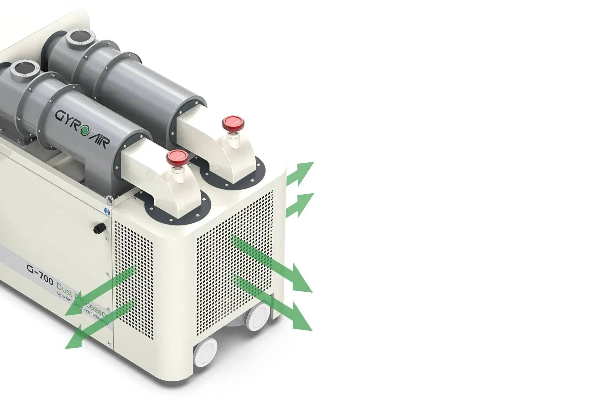 With the new Axial Centrifugation Technology (called GYRO AIR® Technology), the G-700 can collect 99.7% of the dust particles before the air reaches its filters, which means much less cleaning of the filters without any clogging.