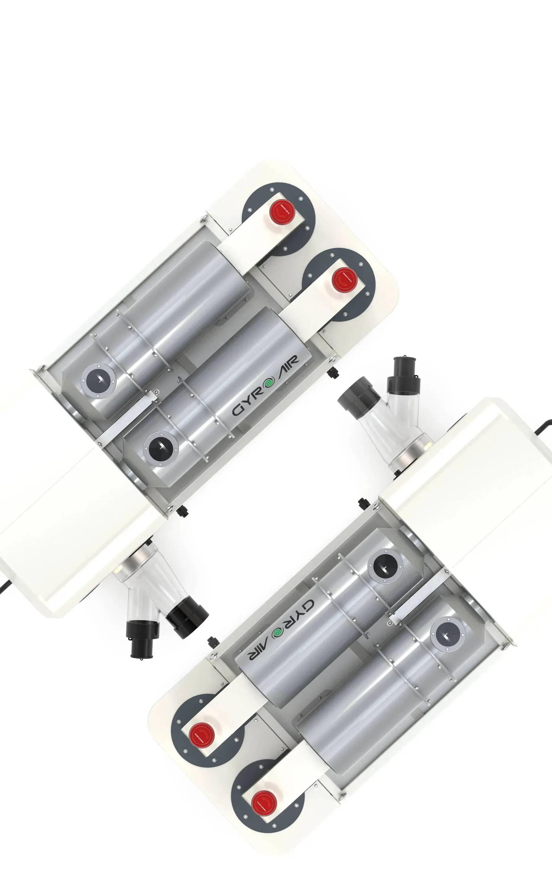The Gyro Air® Dust Processor technology has revolutionized dust collecting. It was designed with Harvey’s invention of Axial Centrifugation Technology (or called Gyro Air® Technology) which is completely different than any existing dust collector on the market. The Gyro Air® Technology spins the flowing dust stream at high speeds (over 4000 rpm), which generates a significant centrifugal force on dust particles (over 100g) causing them to be pushed away from the air flow center and depositing them into dust tanks. The clean air remains in the chambers and any remaining fine particles are collected in the air filters.
