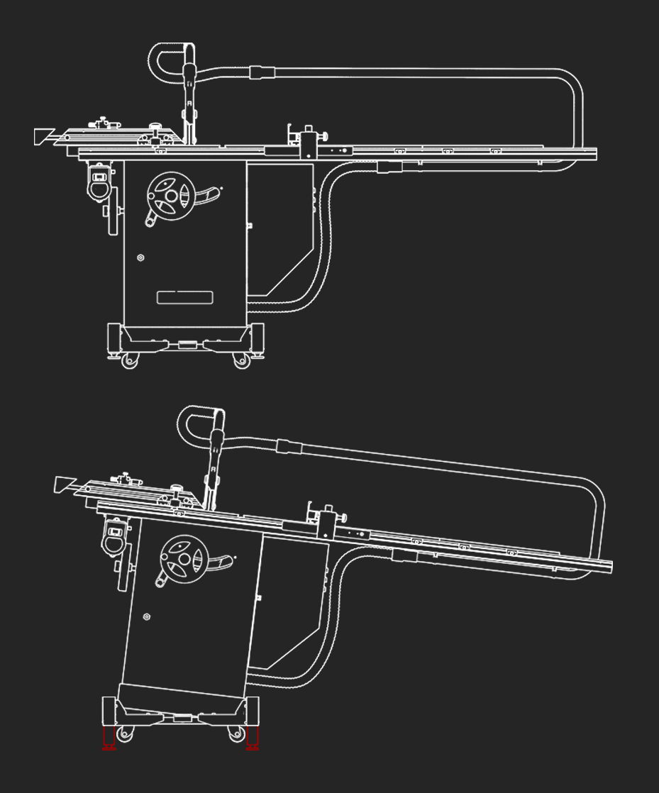 Designed specifically for machines with additional support feet or legs (e.g., table saws), the M1500E Extension Kit provides seamless movement.