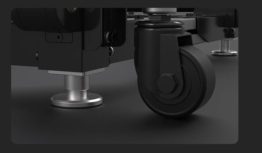 The M-1500Pro's adjustable swivel casters ensure a level tabletop on uneven surfaces, meeting U.S. garage slope standards ( 1/8ā to 1/4ā per foot).