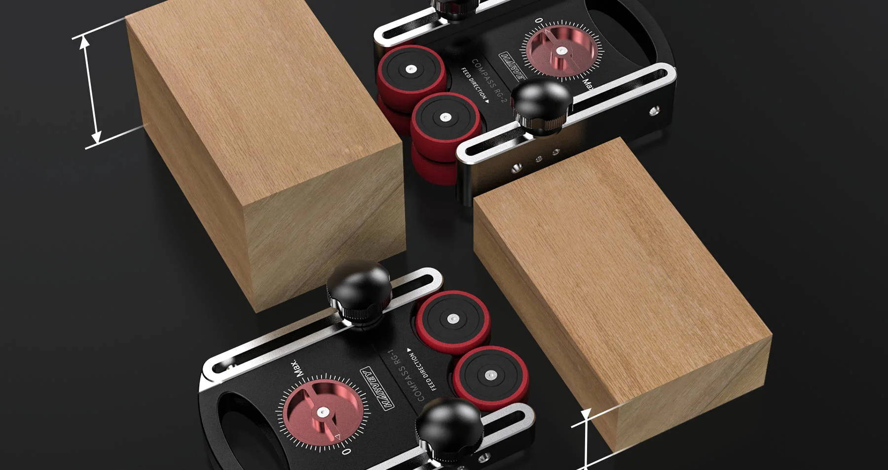 “Good Enough Is Not Enough”. Harvey team never stops thinking of better tools for woodworking. The Compass Universal Roller Guides are the brand new results from the new ideas!
