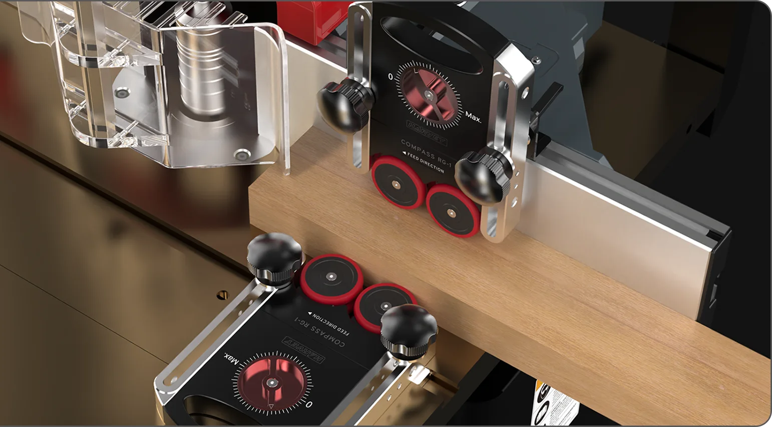 We are excited to introduce the brand new Compass Universal Roller Guide which will act as an ideal workpiece holder for safety and quality cutting. Harvey Compass Roller Guides have two models RG-1 and RG-2 for different thickness ranges of stocks.