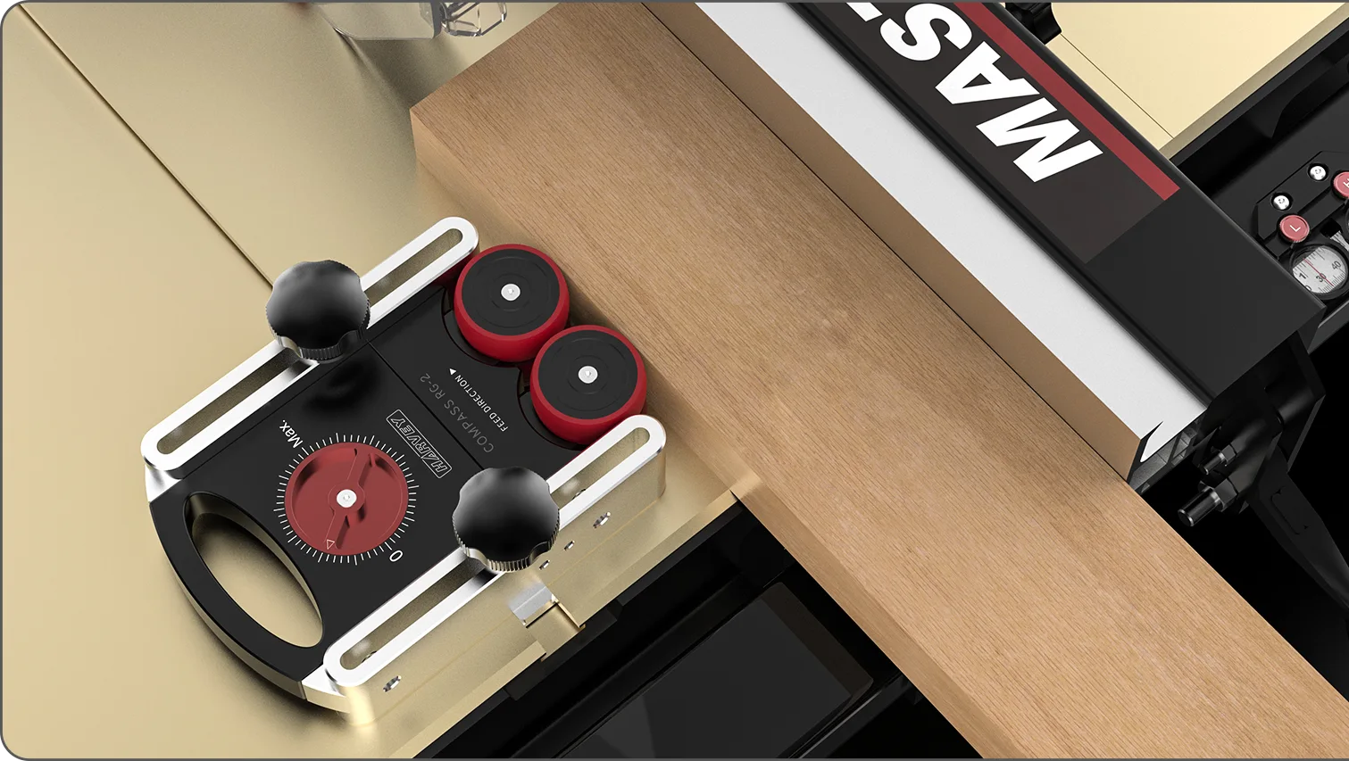 Each Compass Roller Guide features two guiding rollers to hold the workpiece during cutting. Obviously the two rollers make hand feeding much more comfortable compared to the feather boards with sliding frictions. Also the two rollers are riding on 2 One-way bearings which have much bigger reverse resistance to reduce the risk of kickbacks. The unique Independent Suspension Mechanism (ISM) enables the two rollers to keep even vertical pressure to the workpiece during cutting, this will greatly prevent work piece chattering. Moreover, the holding force is infinitely adjustable (15 – 22lbs / 70 – 100N) through an intuitive adjusting knob which gives you the optimized holding force for different cutting scenarios. The RG-1 and RG-2 Roller Guides are greatly versatile for different applications such as table saw cuttings, bandsaw cuttings, router table cuttings and shaper cuttings. Like every other Harvey products, Compass Universal Roller Guides are designed and manufactured with the best possible structure, aesthetics, materials and accuracy. We are confident that the Compass RG-1 and RG-2 will be your lovely buddies for your safe and enjoyable woodworking.