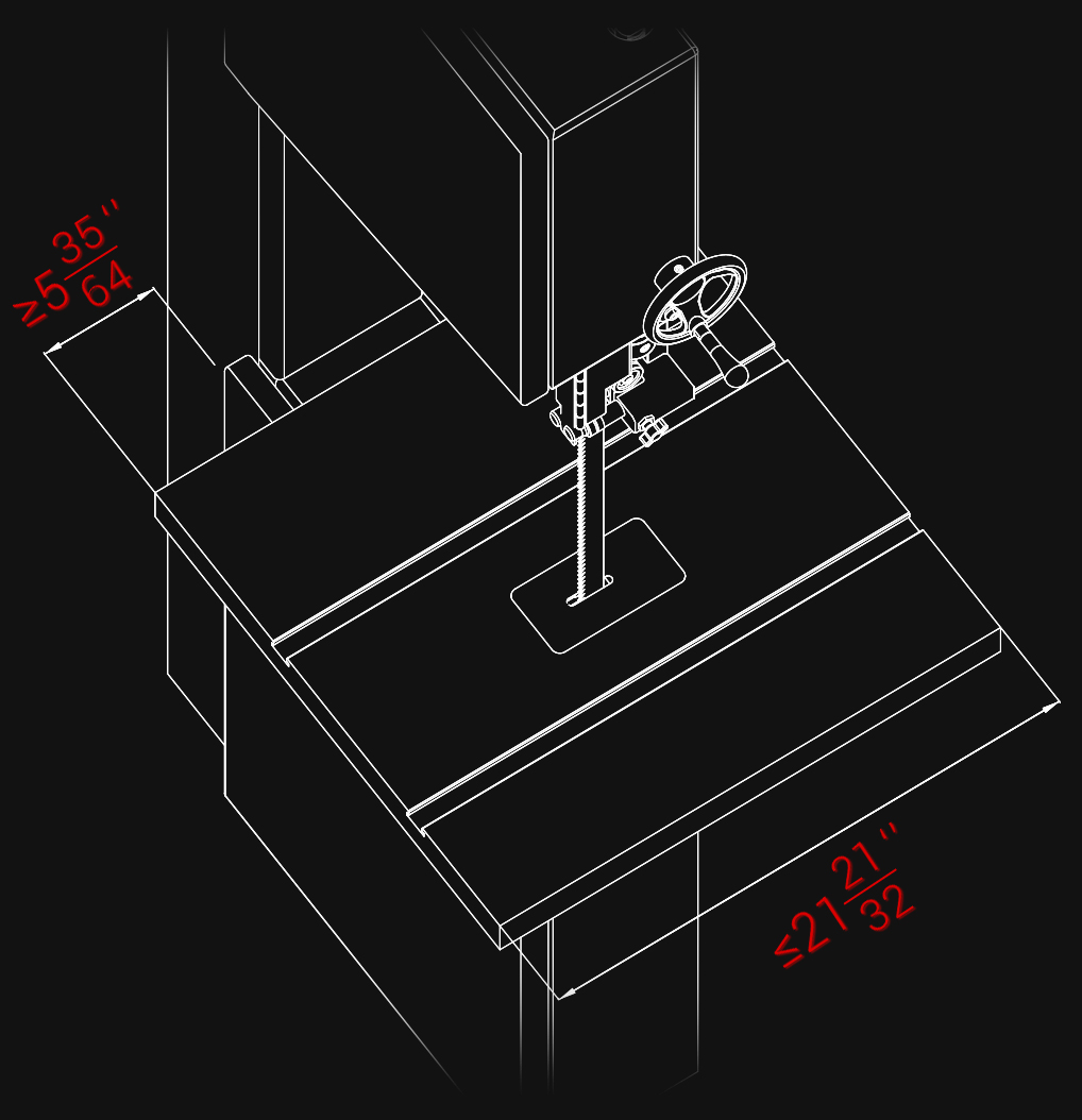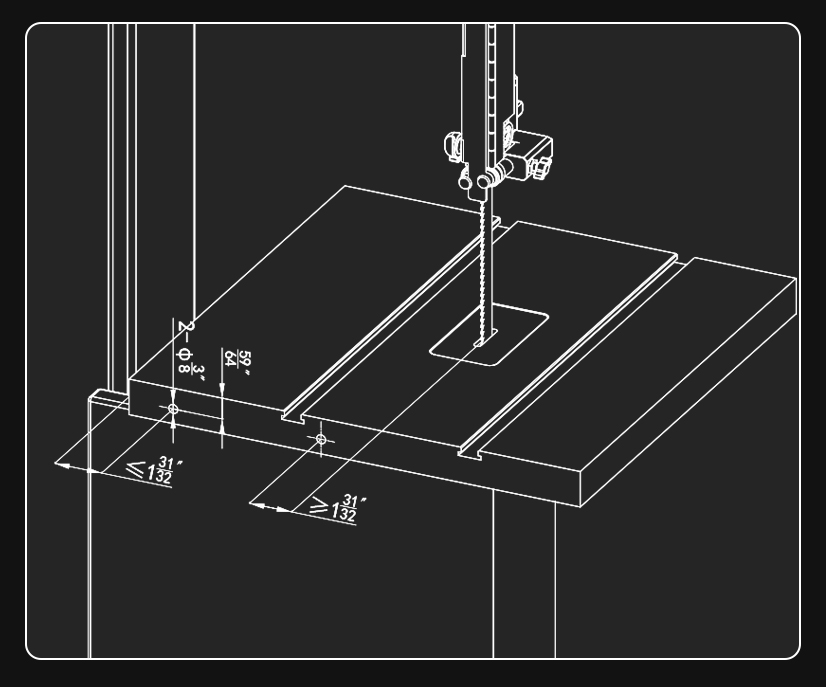 1. A minimum of 5-35/64″ (140mm)between the table’s front edge and the column, ensuring the fence slides freely without contacting the column (as shown in Fig. 1).